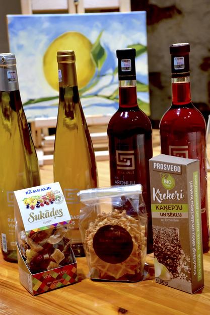 Piedāvājumā iekļautas gardas lokālās uzkodas no Latvijas laukiem, kas lieliski papildina vīnu buķeti – Kārumu Muižas siera vafelītes, bioloģiskās saimniecības Prosvego krekerīši un slavenās Rāmkalnu sukādes.